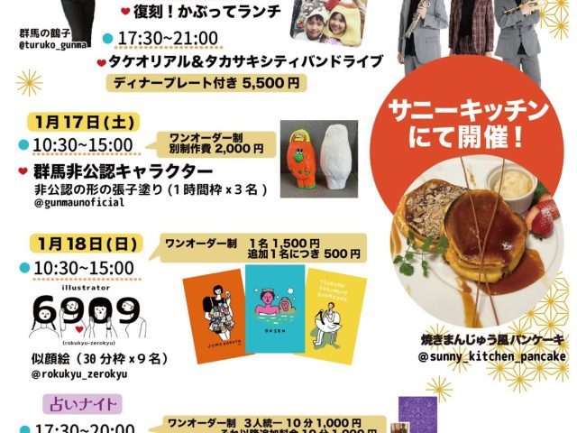 いつもサニーキッチンをご利用頂きましてありがとうございます。 1月はイベント紹介から⭐︎ 群馬の鶴子さん 15周年キックオフイベントin サニーキ...