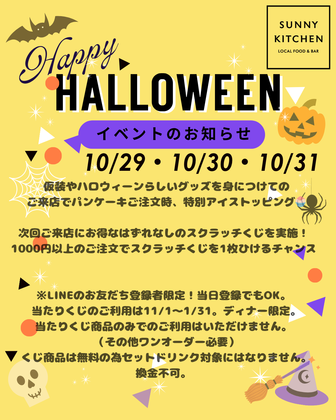 サニーキッチン🥞ハロウィンイベント。くじは終わり次第終了となります。皆様の御来店お待ちしております💕